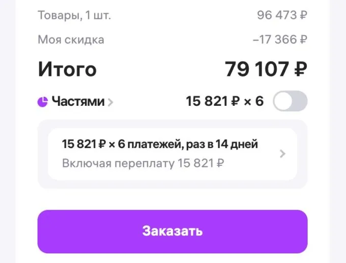 - Размер переплаты за товар и периодичность списаний указываются перед оплатой. В WB подчеркивают, что если клиент захочет вернуть взятую в рассрочку вещь, то платежи вернутся (включая переплату).