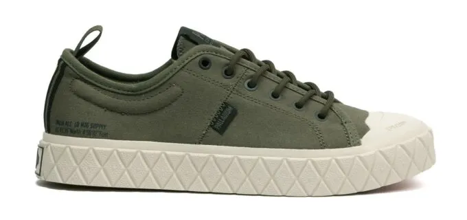 Завершаем подборку с помощью классических низких кедов Palla Ace Lo, выполненных в оливковом цвете. Это функциональная обувь с жесткой прочной подошвой, верхом из органического хлопка и универсальным дизайном. Логотип французского бренда расположился на боковых частях кедов и на язычке. Ну, а петля на заднике облегчит процесс надевания.