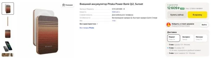 Сейчас ультрамодный пауэрбанк Pitaka Power Bank Qi2 на 5000 мАч можно урвать на Маркете за 12 609 рублей. А с кэшбэками от некоторых банков цена станет ещё более выгодной.