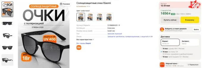 Сейчас на Яндекс Маркете стильные очки Xiaomi Turok Steinhardt Hipster можно урвать за 1656 рублей. А с кэшбеками некоторых банков они обойдутся ещё дешевле.