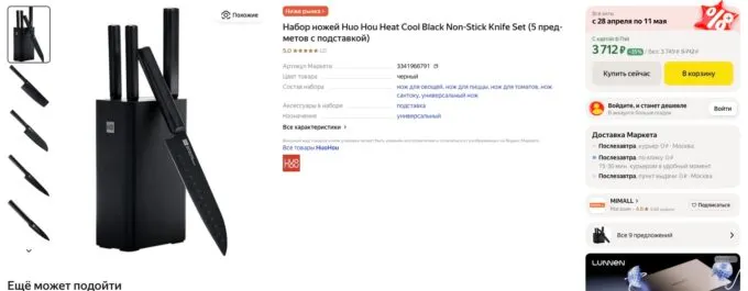 Сейчас на Яндекс Маркете шикарный набор ножей Xiaomi HuoHou Kitchen Knife Set можно купить за 3712 рублей, а с кэшбеком некоторых банков он обойдётся ещё дешевле.