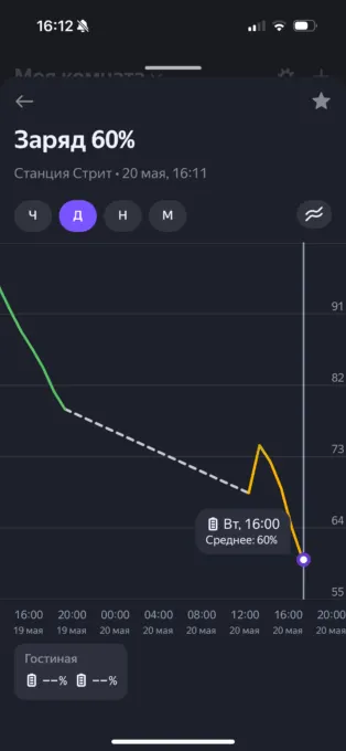 Узнать о точном уровне заряда можно прямо в приложении или с помощью голосовой команды. Ещё удобно, что в аппе есть график расходования заряда и рассчитываемое потенциальное время использования.