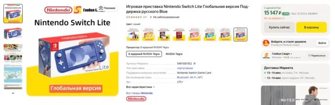 Сейчас на Яндекс Маркете самую компактную консоль Nintendo Switch Lite можно урвать от 15 147 рублей. Также не забывайте, что многие банки предлагают жирный кэшбек за покупки на этой платформе.