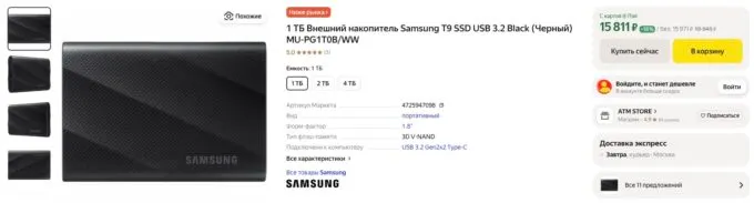 Прямо сейчас на Яндекс Маркете топовый Samsung T9 SSD на 1 ТБ можно урвать за 15 811 рублей. А с кэшбеками некоторых банков вы сэкономите ещё больше.
