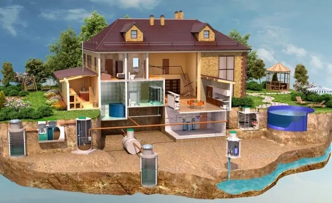 Отработанную воду нужно куда-то сливать. Для частного дома чаще всего выбирают автономную канализацию — септик или локальную очистную станцию (ЛОС). Самый дешевый вариант — септик-накопитель, который собирает сточную воду для последующей откачки. Его можно поставить и за 10 тысяч рублей, причем вместе с материалами.