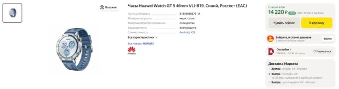 Сейчас топовые смарт-часы Huawei Watch GT 5 можно урвать на Яндекс Маркете всего за 14 220 рублей. Также не забывайте, что многие банки готовы отсыпать щедрый кэшбек за покупки на этой платформе.