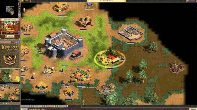Начнем с игры, которая ломает саму механику RTS. Мы привыкли думать об этих играх, как о StarCraft, где много контроля, реакции, горячих клавиш и так далее. Но Majesty – другая. В ней мы не управляем юнитами самостоятельно. Мы строим здания и мотивируем героев через награды, чтобы они выполняли задания и защищали земли, но не можем отдавать приказы напрямую.