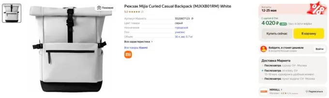 Прямо сейчас свежий рюкзак Xiaomi Mijia Rolled Casual Backpack можно урвать на Яндекс Маркете всего за 4020 рублей. Также не забывайте, что многие банки готовы отсыпать щедрый кэшбек за покупку на этой платформе.