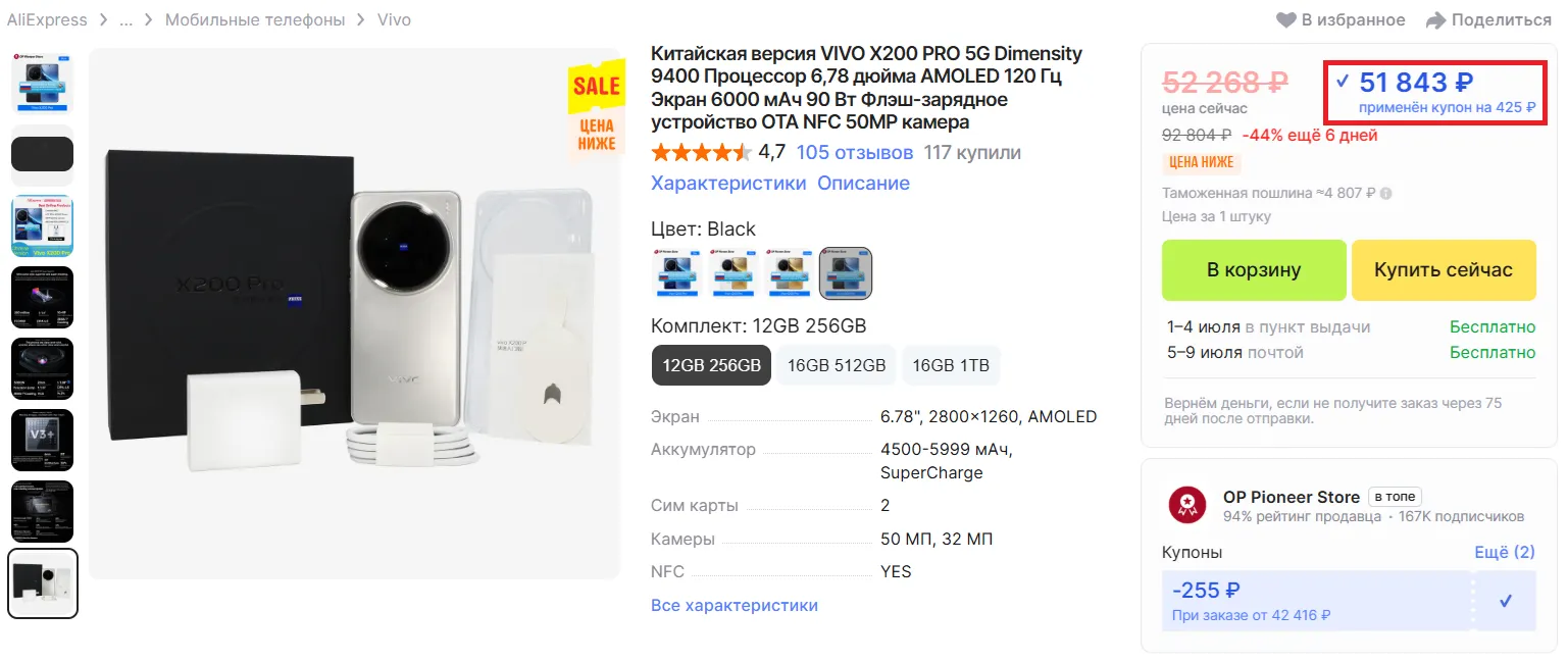 Важно: все указанные цены актуальны на момент написания заметки и могут отличаться в зависимости от аккаунта. Для получения лучшего прайса хватайте доступные на странице купоны продавца.