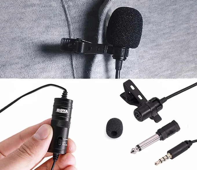 Очень простая петличка, которая имеет провод на 5 метров. Подойдет для записи качественного звука в домашних условиях, идеально при съемках видео-туториалов типа «Как посадить кабачки» или «Чем отмыть плиту». Подключение — штекер 3,5 мм, но встречаются версии микрофона с переходниками.