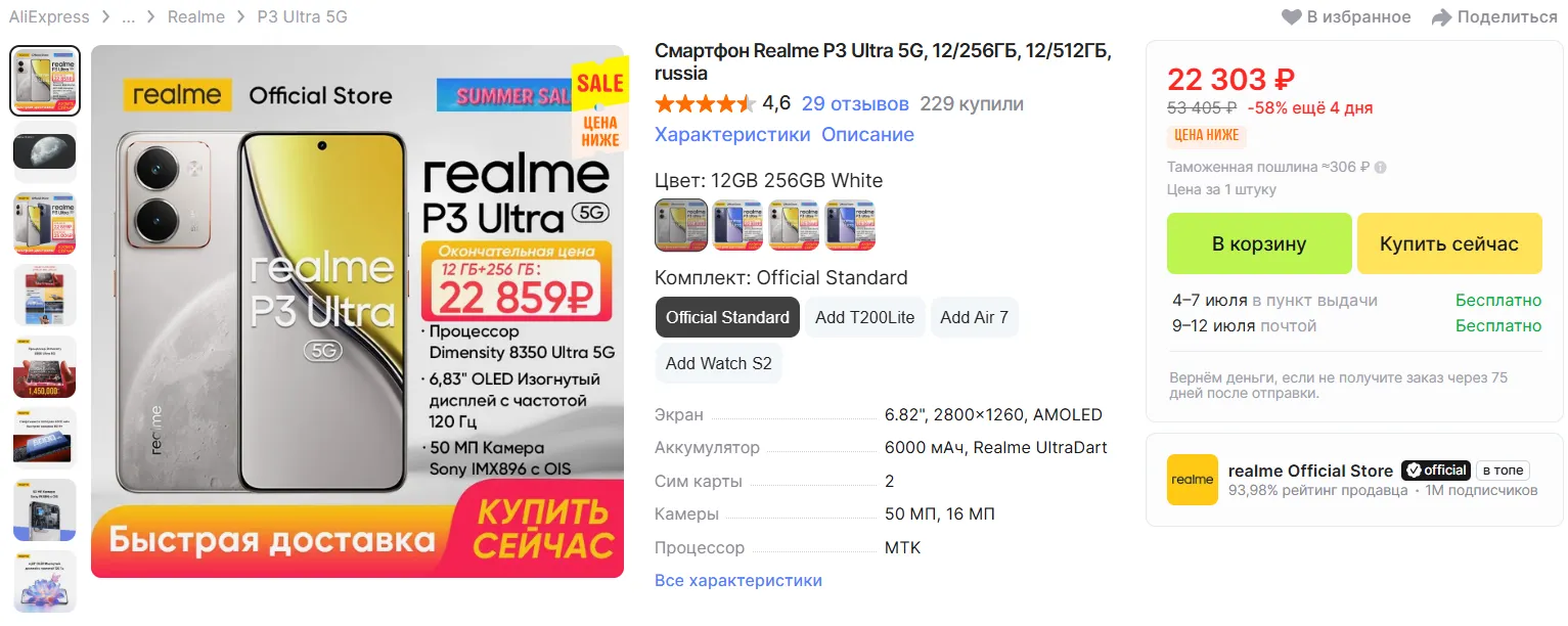 На Али идет шикарная распродажа — ценники крайне сочные, мы уже доказали это на примере трех классных флагманов. Теперь пройдемся по модельному ряду крайне популярной в России компании Realme и выделим пятерку смартфонов, которые на сейле доступны до классным ценам.