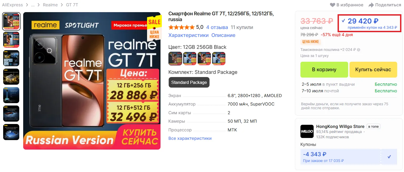Важно: все указанные цены актуальны на момент написания заметки и могут отличаться в зависимости от аккаунта. Для получения лучшего прайса хватайте доступные на странице купоны продавца.