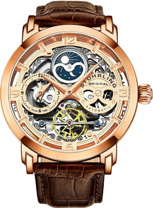 Оттенок под розовое золото в Stuhrling Legacy 3924.3 идеально сочетается с классическим кожаным ремешком, придавая модели благородный и элегантный облик. Ещё часы могут похвастаться ударопрочным стеклом Krysterna и влагозащитой в 50WR. Да, их можно не снимать даже в душевых или у бассейна. Для ценителей инженерной эстетики — просто мастхэв.