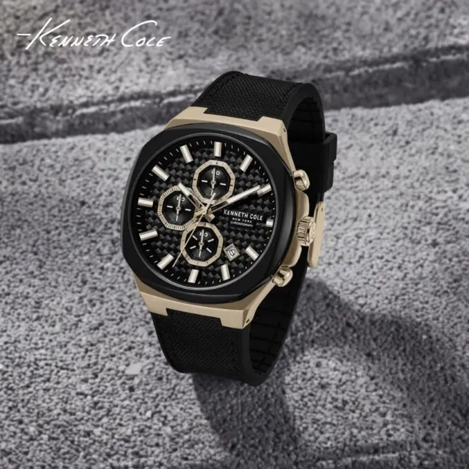 Часы Kenneth Cole KCWGO0059602 сочетают в себе городской стиль с хронографом и солидной функциональностью. Они выполнены в урбанистическом дизайне с золотыми вставками и чёрным безелем. Матовый стальной корпус и ремешок из силикона создают сбалансированный образ, подходящий как для офиса, так и для активного отдыха. Минеральное стекло прикрывает циферблат, оформленный под карбон.