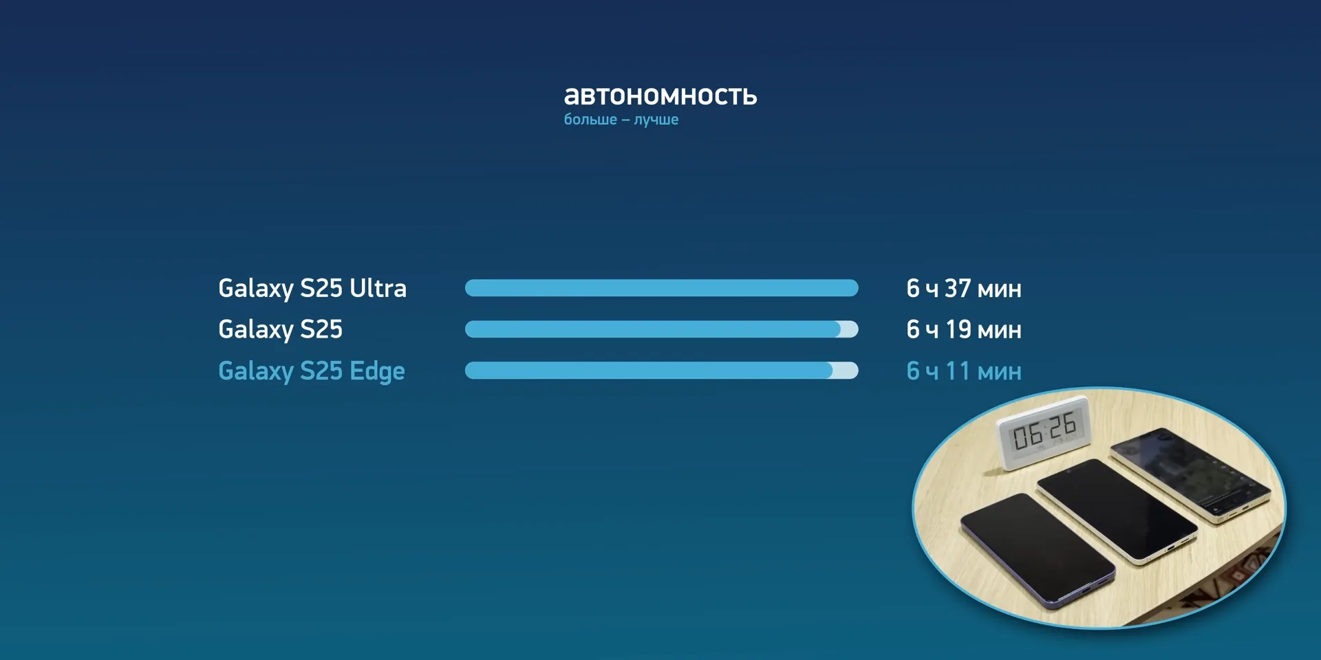 Между прочим, в тесте непрерывного просмотра тиктока S25 Edge умер через 6 часов 11 минут — результаты вполне неплохие даже на фоне Ultra.