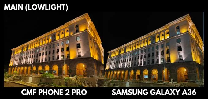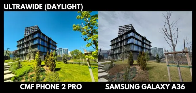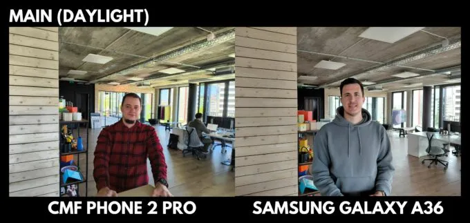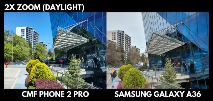 Оба смартфона снимают достойно, особенно при хорошем освещении. Samsung Galaxy A36 выдает натуральные снимки с корректной цветопередачей и хорошей детализацией, в то время как на CMF Phone 2 Pro снимки получаются более яркими и с повышенной контрастностью. А еще «прошка» предлагает качественное боке с 2-кратным зумом без потери качества. В «ашке» вместо телевика предусмотрен слабенький макромодуль на 5 мегапикселей.