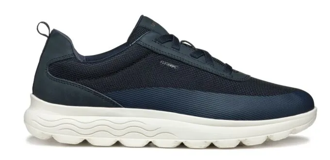 Начнем с модели Serifos. Это практичные темно-синие кеды с верхом из плотной ткани и натуральной замши. Но главная фишка – воздухопроницаемость. Кеды от Geox обладают подошвой с уникальной системой вентиляции. Эта модель – не исключение. Амортизирующая межподошва и современный силуэт прилагаются.
