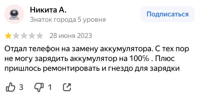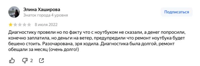 В чем суть? 50-60% отзывов практически любого сервис-центра – рассказы, как с людей взяли деньги за консультацию (1000-1500 рублей), а потом констатировали, что гаджет ну никак не спасти. «Весь их бизнес построен на этих консультациях», – самый частый отзыв выглядит так.
