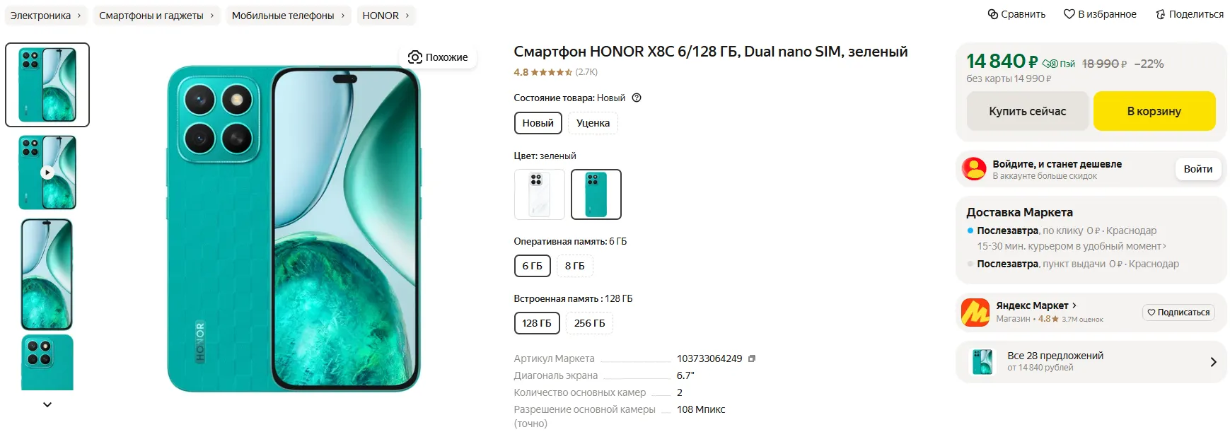 Honor X8c добрался до России в феврале и уже стал хитом продаж: на Маркете смартфон оценили чуть меньше трех тысяч пользователей, а это означает, что заказов в разы больше. В конце весны мы даже протестировали этот девайс и остались довольны.