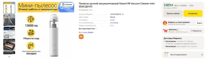 Сейчас на Яндекс Маркете топовый мини-пылесос Xiaomi Mi Vacuum Cleaner можно купить всего за 3851 рубль, а с кэшбеком некоторых банков он обойдётся ещё дешевле.