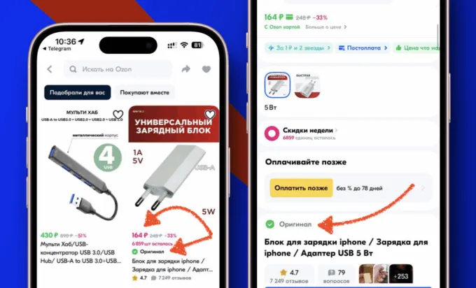 Коллеги из iGuides обратили внимание, что Ozon помечает в качестве оригинальных товаров в том числе те, которые никак не могут ими быть. Это опасный прецедент — риск нарваться на фейк при покупке техники (например, от Apple) высок, как никогда.