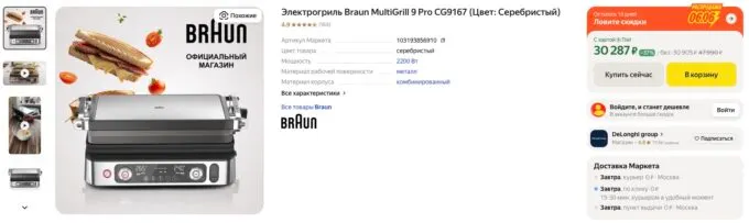 Обычно за Braun MultiGrill 9 Pro CG9167 просят почти 40 тысяч, но сейчас на Яндекс Маркете его можно урвать всего за 30 287 рублей, а с кэшбеками некоторых банков вы можете сэкономить больше.