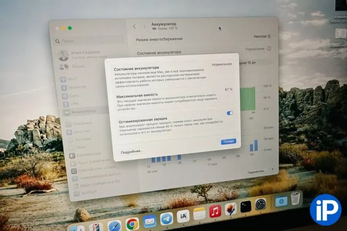 За два года MacBook Air остался с 87% батареи при 664 циклах перезарядки. Его до сих пор можно брать на работу и не хватать зарядку. С компьютером можно легко добиться 6-7 часов работы экрана.
