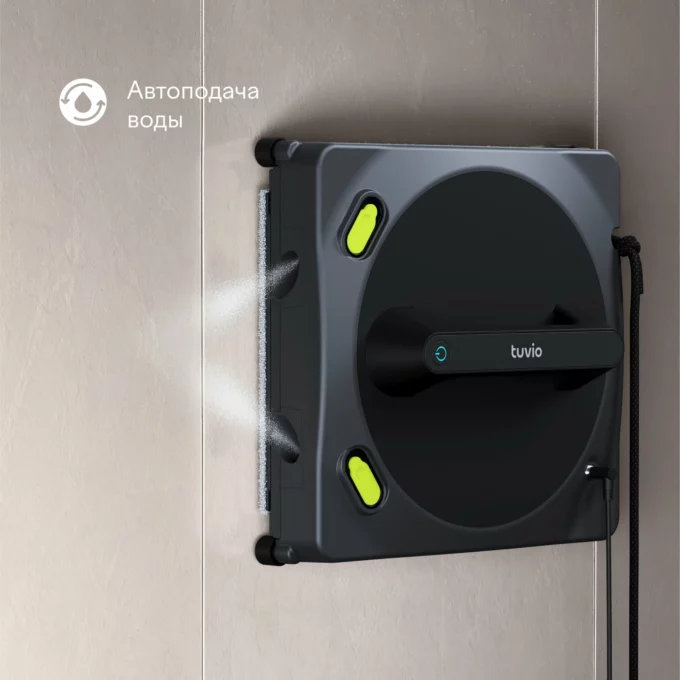 Скорость работы Tuvio TVR02W — 1,5 минуты на квадратный метр. Из плюсов можно выделить автоматическую подачу воды и моющего средства, а также встроенные датчики, которые не дадут роботу съехать с безрамочного стекла. Управлять гаджетом можно через приложение или пульт. На выбор доступны три автоматических режима движения. Бака на 30 мл спокойно хватит на пару окон, а мягкие насадки не оставляют царапин даже на нежных поверхностях.