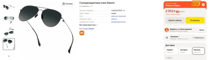 Прямо сейчас на Яндекс Маркете стильные очки Xiaomi Mijia Aviator Pro можно купить всего за 2352 рубля. Также не забывайте про кэшбеки некоторых банков, с которыми они обойдутся дешевле.