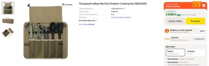 Сейчас лучший походный набор NexTool Cooking Set 6 Tools можно урвать на Яндекс Маркете всего за 2686 рублей, а с кэшбеком некоторых банков он обойдётся ещё дешевле.