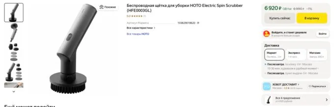 Прямо сейчас на Яндекс Маркете топовую электрическую щётку для уборки HOTO Electric Spin Scrubber можно урвать за 6920 рублей. А с кэшбеками некоторых банков девайс обойдётся ещё дешевле.