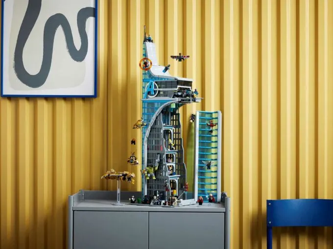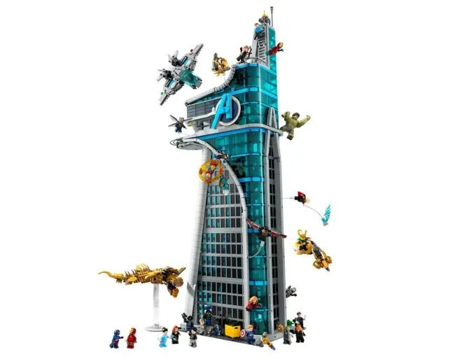 На каждом из этажей воссозданы культовые моменты: исследование скипетра Локи, бой Кэпа с самим собой, взлёт Квинджета. В комплекте идёт 31 минифигурка, включая Тони Старка, Халка, Тора, Ванду, Вижена, Осу, Вонга, Чёрную вдову и даже армии читаури. Ещё в сете есть множество аксессуаров, от Тессеракта до молота Мьёльнира и пейджера Ника Фьюри с сообщением Капитану Марвел. Просто лучший экспонат для всех поклонников Marvel.
