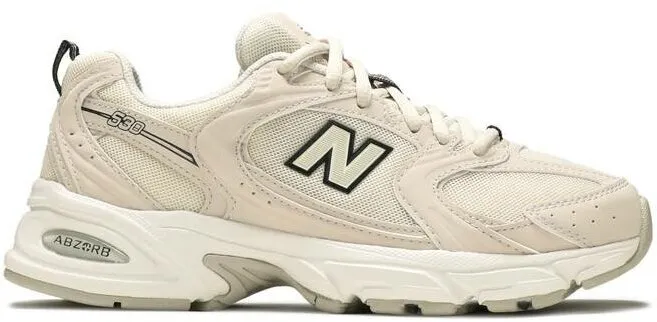 Теперь оцените бежевые кроссовки под номером 530. Это массивная обувь с амортизирующей межподошвой Abzorb, верхом из легких сетчатых материалов и дизайном, отсылающим нас к спортивным моделям из 1990-х и 2000-х. Нескользящая подошва и потрясная воздухопроницаемость прилагаются.