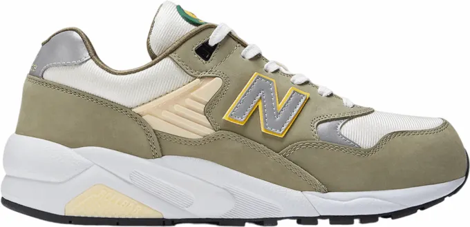 Завершаем подборку с помощью модели 580, выполненной в цвете хаки. Верх из натуральной кожи, массивная подошва с цепким рисунком протектора и милейший дизайн – этого уже достаточно, чтобы задуматься о покупке. Но главное – фирменная технология Rollbar, которая отвечает за стабилизацию задней части стопы и снижает риск травм.
