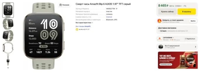 Сейчас новенькие Amazfit Bip 6 можно приобрести на Яндекс Маркете всего за 8465 рублей. Также не забывайте, что многие банки готовы отсыпать кэшбек за покупки на этой платформе.