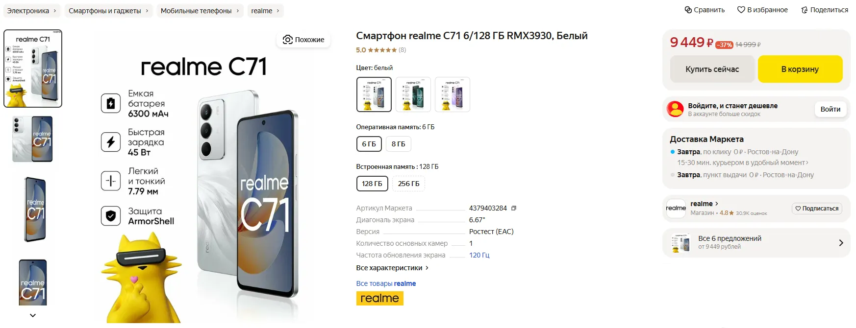 Realme C71 дебютировал пару недель назад на июньской распродаже Али, однако уже добрался до России — такую скорость мы уважаем. Это ультрабюджетник с по-настоящему шикарными характеристиками — кажется, он разрывает вообще всех конкурентов в сегменте до 10 тысяч.