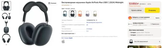 Изначально за свежие AirPods Max (USB-C) просили под 80 тысяч, но сейчас на Яндекс Маркете их можно урвать всего за 53 850 рублей.