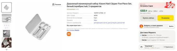 Прямо сейчас на Яндекс Маркете топовый маникюрный набор Xiaomi Nail Clipper Five Piece Set можно приобрести всего за 688 рублей. А с кэшбэками от некоторых банков цена станет ещё более выгодной.