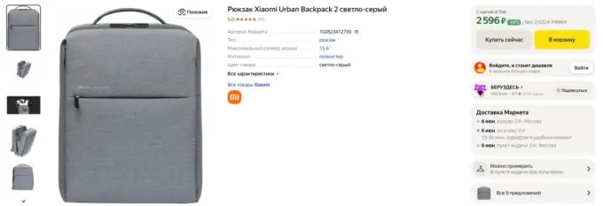 Прямо сейчас на Яндекс Маркете мощный рюкзак Xiaomi Urban Backpack 2 можно урвать всего за 2596 рублей. Также не забывайте про кэшбеки, которые некоторые банки готовы отсыпать за покупки на этой площадке.