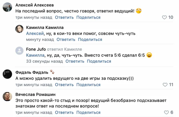 В итоге Старун с легкостью справился с первыми двумя вопросами, но последняя задачка смутила знатока. У него не было правильной версии. Однако в дело вмешался ведущий «Что? Где? Когда?» Борис Крюк. Он буквально вытащил игрока и сделал все, чтобы тот добрался до верного ответа.