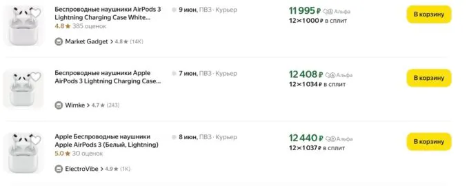 - AirPods 3 — от 12 000 рублей, прошлый месяц — 11 900 рублей