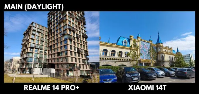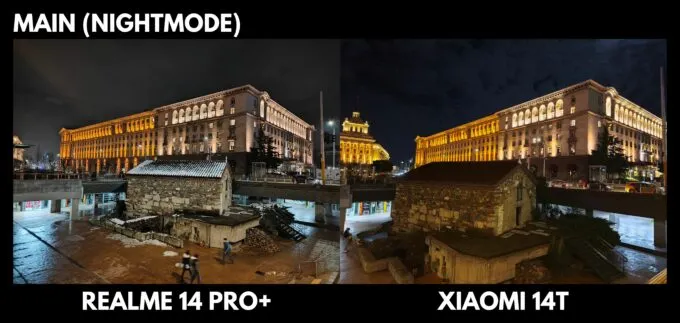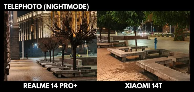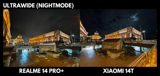 На практике оба аппарата отлично справляются со съемками даже при слабом освещении, но Realme 14 Pro+ выдает более натуральные снимки с лучшей детализацией и хорошим динамическим диапазоном. Xiaomi 14T в свою очередь предлагает более яркие и контрастные фото, а также более навороченный ультраширик.