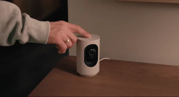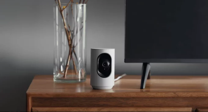 IP-камера имеет цилиндрическую форму и поворотный глазок — им можно управлять удаленно через приложение. Поворотный механизм имеет угол 350 градусов, камера может смотреть на 103 градуса. Устройство пишет видео в 2K QHD.