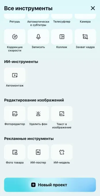 Capcut – не просто видеоредактор с парочкой крутых функций. Здесь можно сделать почти что угодно с видео и фото. Автоматические субтитры, автомонтаж, ИИ-фоторедактор, текст в изображение, ИИ-постер, удаление фона на видео, ИИ-аватары – да, это все есть на отдельных сайтах, но Capcut объединяет множество нейронок в самом аппе. Можно не запариваться с поиском нужной функции и не волноваться за качество результата. Capcut экспортит файлы бесплатно и с минимальными ограничениями. Главная фишка приложения – интуитивно понятная экосистема. Сначала снял видео с суфлером прямо на экране, потом там же добавил нужную озвучку, субтитры и музыку, и добил ИИ-картинками. Все это можно сделать в Capcut, интерфейс которого во многом превосходит даже самые популярные нейросети.