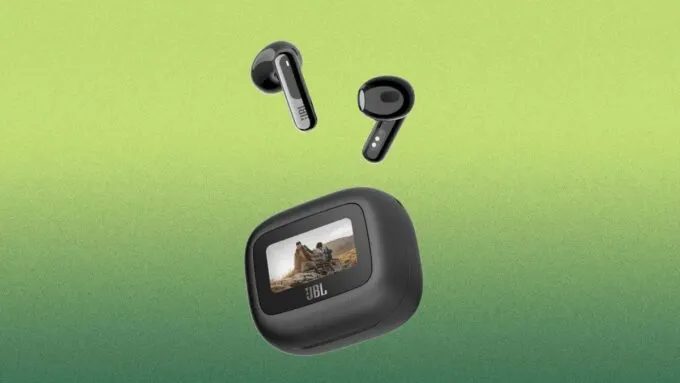 Закончим подборку кое-чем необычным — далеко не самой стандартной моделью от JBL. Как ни странно, отличительная фишка «флексов» — это не качество звучания и даже не шумоподавления, а размещённый прямо на кейсе 1,45-дюймовый сенсорный дисплей. С его помощью можно быстро регулировать звук, перелистывать треки, настраивать эквалайзер и банально смотреть время.