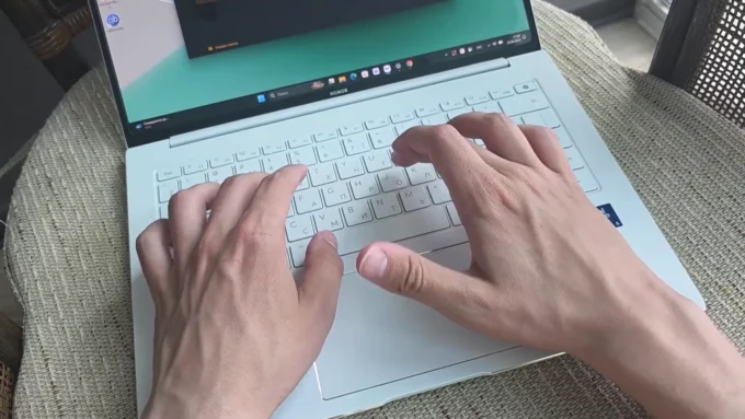 Ноутбук получил клавиатуру с хорошим ходом, набирать текст комфортно. Тачпад нормального размера, его ориентировали по центру. У модели OLED-дисплей на 14 дюймов с разрешением 3,1К и частотой 120 Гц. Ощущения от использования классные — очень насыщенная картинка и яркие цвета.