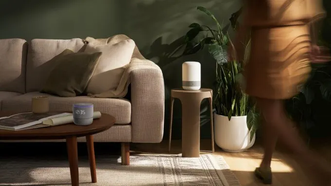 Спецификации колонки были раскрыты еще весной — корпус в виде шайбы, покрытый акустической тканью, часы, кольцевая подсветка, динамик 18 Вт, сенсорное управление и работа от сетевого адаптера.