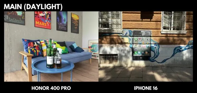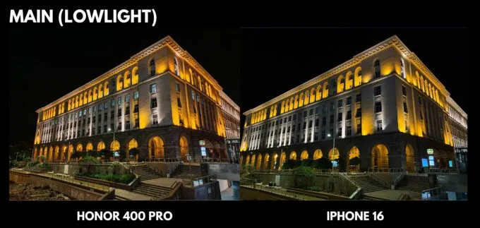 При хорошем освещении оба смарта справляются со съемками без нареканий. iPhone выдает более натуральные фото с правильным балансом белого и хорошей детализацией, в то время как на «онор» снимки получаются слегка приукрашенными. Зато «прошка» обладает более качественным зумом и естественным размытием при портретной съемке, причем на обе камеры. iPhone 16 в свою очередь уничтожает практически всех конкурентов по качеству видеосъемки.