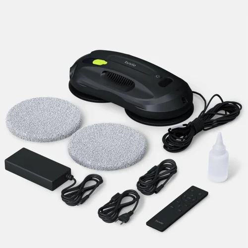 Среднее время уборки — около 4 минут на квадратный метр. Вручную ничего смачивать не нужно. Управлять Tuvio TVR01W можно через смартфон или комплектный пульт. Есть три автоматические программы, точная подача воды без протечек и аварийное питание от резервного аккумулятора. Последняя фича удержит устройство на стекле до 20 минут при отключении электричества. Работает девайс только от сети, но в комплекте идёт удлинитель. Конструкция рассчитана так, чтобы не поцарапать стекло и не испортить герметик.