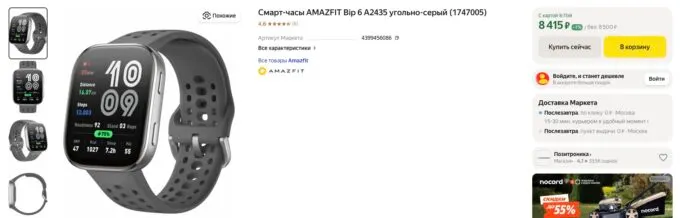 Прямо сейчас свежие Amazfit Bip 6 можно урвать на Яндекс Маркете всего за 8415 рублей. Также не забывайте, что многие банки готовы отсыпать кэшбек за покупки на этой платформе.